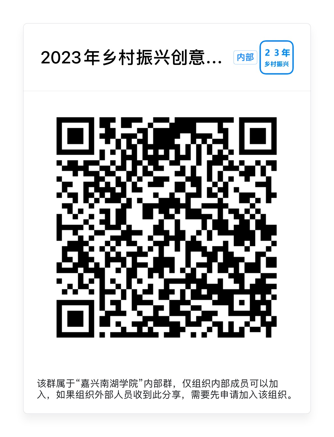 (三)《“建行裕农通杯”第六届浙江省大学生乡村振兴创意大赛竞赛指南》和各专项赛竞赛通知等资料获取地址链接和二维码为:https://pan.baidu.com/s/178yJKFNSMvl4FCk0-23SJQ?pwd=1111