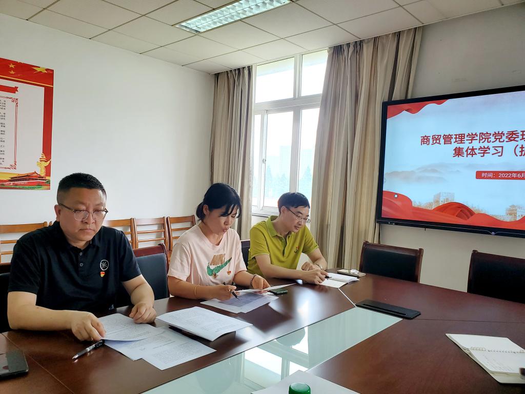 6月16日下午,十大买球官方网站党委理论学习中心组举行集体学习(扩大)会,集中学习习近平总书记在庆祝中国共产主义青年团成立100周年大会、中央政治局第三十八次集体学习、中央经济工作会议和中国人民大学考察时的重要讲话精神,院党委成员刘勇、孔冬、夏江华,院学工负责人、党建工作室负责人、教职工以及学生党支部书记出席会议。
