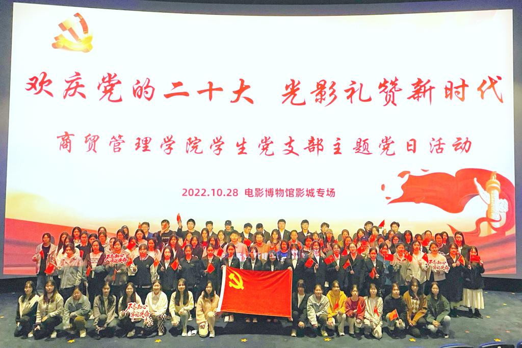 为欢庆党的二十大,激发党员爱党爱国情怀,增强民族自豪感,十大买球官方网站党建工作室于10月28日晚,在电影博物馆影城组织开展了“欢庆党的二十大 光影礼赞新时代”主题党日活动,学生党支部共98名学生党员,4名教师党员集中观看了爱国主义教育电影《万里归途》。