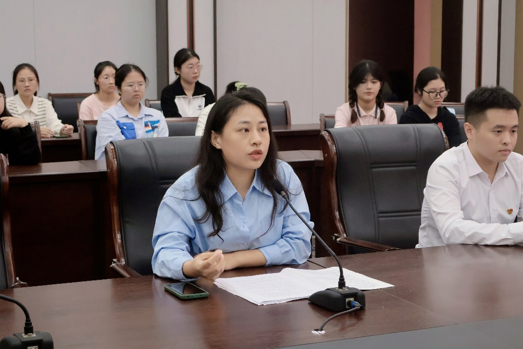 随后,为使同学们深入了解党员发展程序,十大买球官方网站学生第二党支部组织委员蒋紫燕对党员发展的各项程序展开了全面详细的讲述,就入党申请书、思想汇报的书写要求等进行讲解说明。此外,蒋紫燕同学还以学姐的角度从学习生活、党团服务、社团活动等方面做了发展方向以及规划建议等经验分享,令同学们受益匪浅。