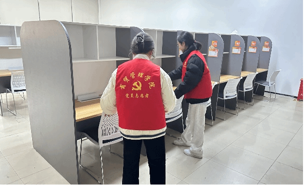 考研同学在支部学生党员的组织下,开启了本次座位分配仪式。分配到位置的同学签署了《十大买球官方网站考研座位使用承诺书》,并在学生党员的带领下,确认自己的考研座位,开始座位布置,进入了备考状态。