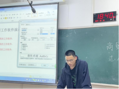朱德涛同学围绕Word、Excel、PowerPoint等办公基本应用软件的使用展开说明,从对软件的系统认知到每个软件各项功能模块的大致分布,并对三款软件的部分功能进行基本操作演示。他建议各位同学要将办公软件的学习应用与个人综合素养的提升联系起来,不仅有利于计算机二级证书的备考、快捷处理各类学习、工作文件,还有利于在日后的就业竞聘中,通过熟练使用办公软件赢得用人单位的青睐。
