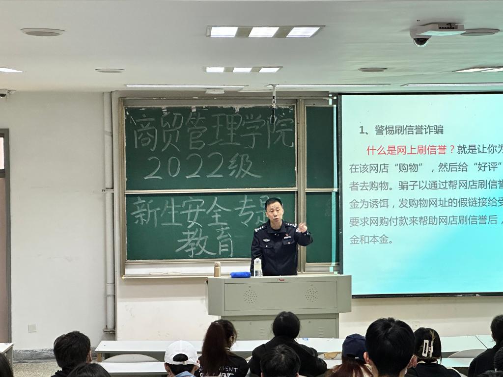 为进一步加大校园反诈防骗宣传力度,普及反诈防骗等安全知识,提高新生自我防范意识和保护能力,11月17日下午,学院学工办在教一153举行2022级新生安全教育专题讲座,讲座由新兴派出所冯警官主讲。