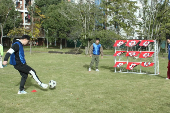 活动伊始,热身运动打破陌生感,大家在教练带领下舒展筋骨、互动破冰,为后续比拼筑牢基础。随后,足球九宫格、水果连连看、飞盘嘉年华、旱地冰壶等特色项目依次开展。足球九宫格前,退伍学子精准发力、默契配合,展现出过硬的肢体协调性;水果连连看项目中,选手们凝神聚力、快速记忆,考验脑力与反应速度;飞盘嘉年华上,彩色飞盘在空中划出弧线,传递着协作与快乐;旱地冰壶赛道上,大家排兵布阵、谨慎投掷,尽显策略与沉稳。